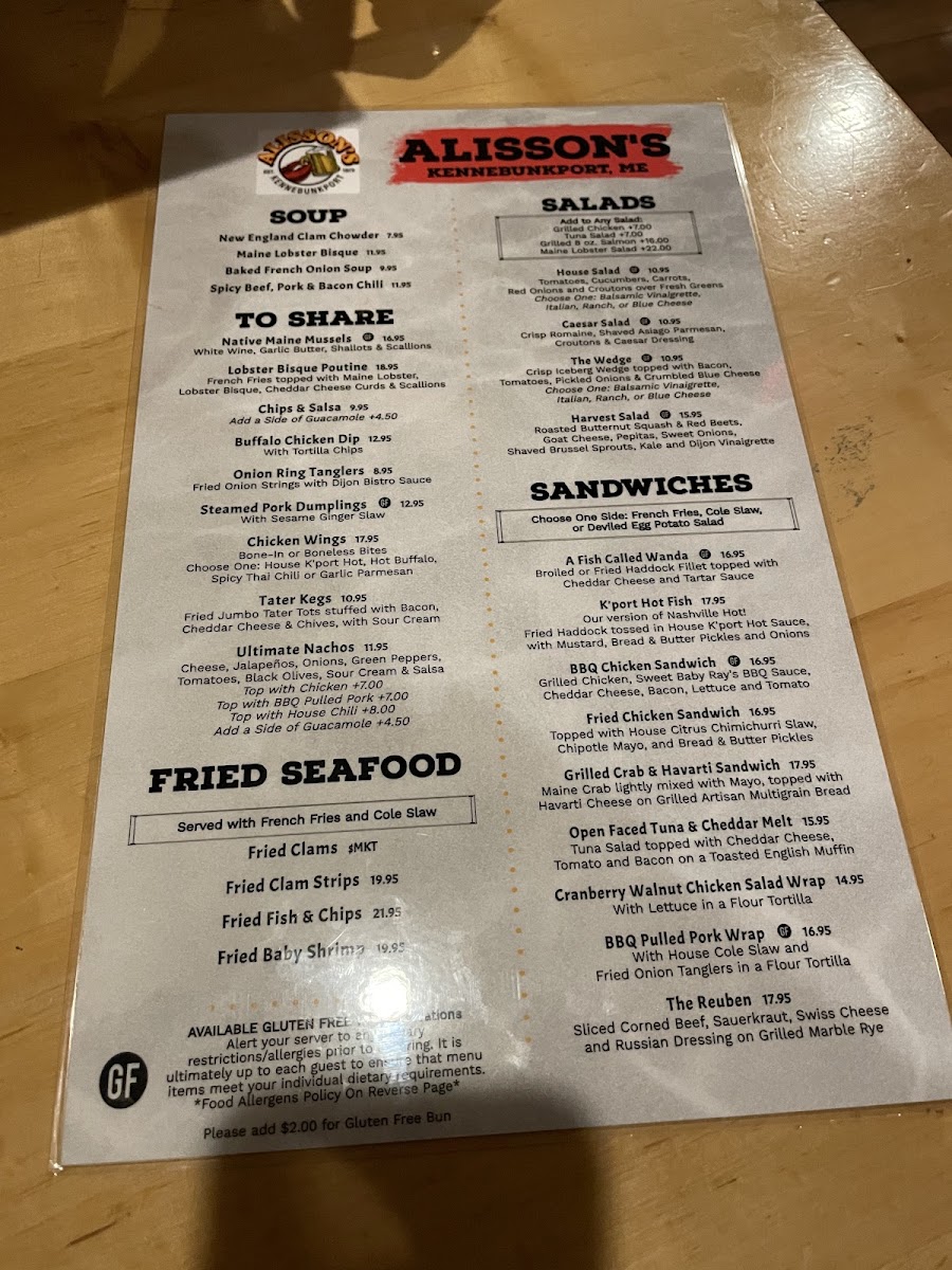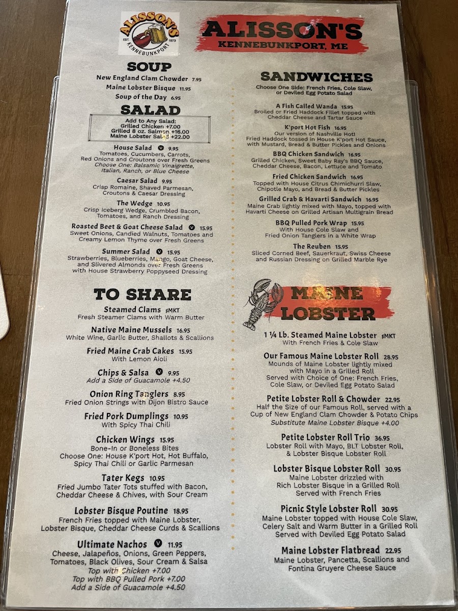 Welcome to Alisson's Restaurant, nestled in the heart of picturesque Kennebunkport, Maine. This delightful eatery offers a menu brimming with coastal New England flavors that elevate your dining experience. From hearty lunch options like grilled chicken sandwiches to decadent dishes such as lobster bisque and lobster rolls, Alisson's strikes a balance between taste and comfort.